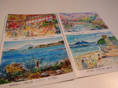 木下俊延氏イラストによる ↑特製逗子絵葉書セット進呈。
