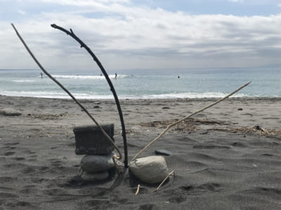 こちら↓は、今週火曜日 のんびり私が過ごした七里ガ浜。どなたかの浜辺のアート。