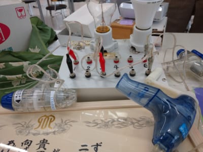 例えば、「発電体験」というのがあります。 私たちの生活は、スイッチ一つで電気がつく。それが当たり前です。 そこで、逆に、電気を起こす側にまわる。そんな体験をしてもらうのが狙いです。 全員が手回し発電を持って電気を起こし、1分間電球をつけ続ける。これが結構大変なんです。(はい、私も体験しました。)その大変さを感じて、電気のありがたみを感じてもらう・・実験です。