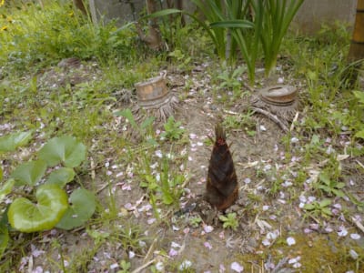 タケノコが今年も元気に生えているのを発見。さっそく取って煮てみました。私にとってはじめての体験。