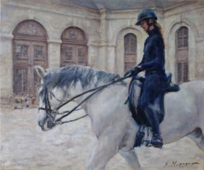今回の個展では、近年訪れたヨーロッパの風景や去年訪れたパリ郊外のシャンティイという街の馬術風景などの油絵を中心に展示します。 シャンティイには城や競馬場があったり、博物館、劇場も・・