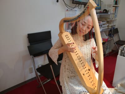 ハープ奏者の伊藤美恵さん。