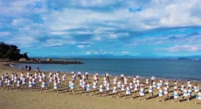 各パートは4秒の尺しかないのですが、その4秒に各パートぎゅっと凝縮され、逗子・葉山の自然と共に、子供たちのキラキラとかがやく映像、壮大で本当に素敵な映像になっています。 上空からポンポンでつくったHAYAMAの文字も撮影していただいたそうです。