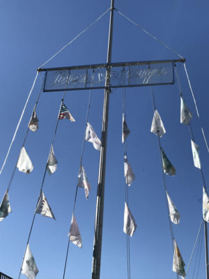 ↑入り口横にあるポールには、白い旗が沢山掲げられています。