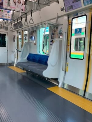 車内はこんな感じです。一瞬全部シルバーシート?と思いましたが、シルバーシートの部分は黄色の手すりになっていました。