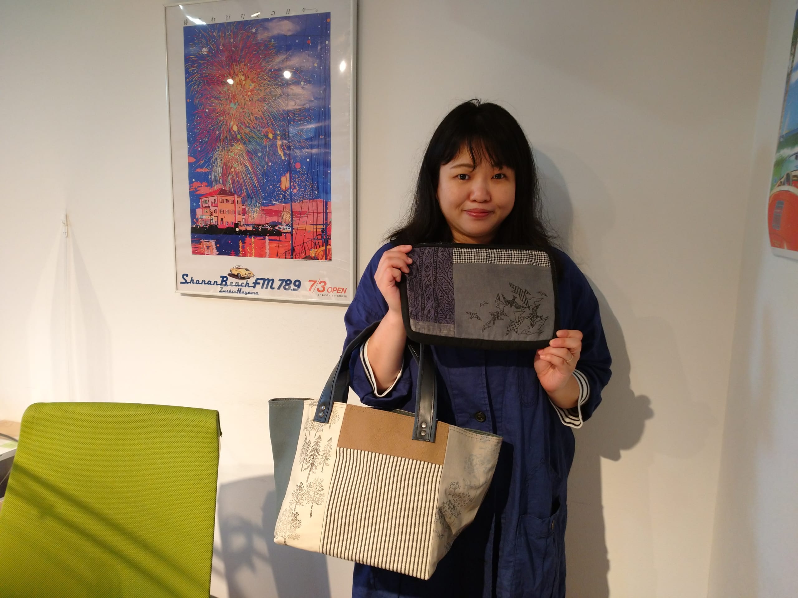 つづいて デイリーインフォメーションでは ただいま開催中の第29回葉山芸術祭に参加のバッグ作家・ Tracking+にお話いただきました。
