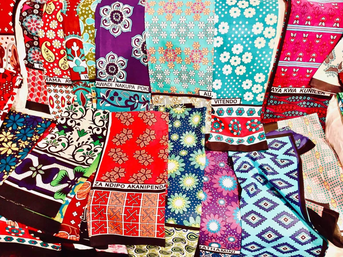 カンガ布にはカンガセイイングと言って1枚1枚スワヒリ語で文言が書かれています。 現地の女性達は気に入った柄や文言のカンガを選び1、2枚まとってお洋服にしたり、赤ちゃんの抱っこにつかったりしています。 それだけではなくアフリカでは女性が政治的発言や主張をする事が難しい風潮が残っているのでカンガセイイングを通して自分言いたいことを主張する事があると昔、じゅんこさんから教えてもらったと・・岸田さんも先日、カンガで作った日傘を購入しましたが そこに刻まれていた文字は、「人生は旅です。」でした。もうその言葉に感動して即これに決めました、と。