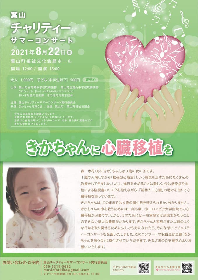 葉山育ち、3歳の森 木花ちゃんは「拡張型心筋症」という病気を治すために、2年以上たくさんの治療をしてきました。 現在、補助人工心臓の助けを借りて心臓移植を待っています。 きかちゃんが4歳のお誕生日を迎えられるように、みなさまのご支援を心よりお願いいたします。 一刻も早く渡米し、心臓移植を受けることが必要な状態です。そのためには莫大な費用がかかります。目標金額は 3億5000万円です。