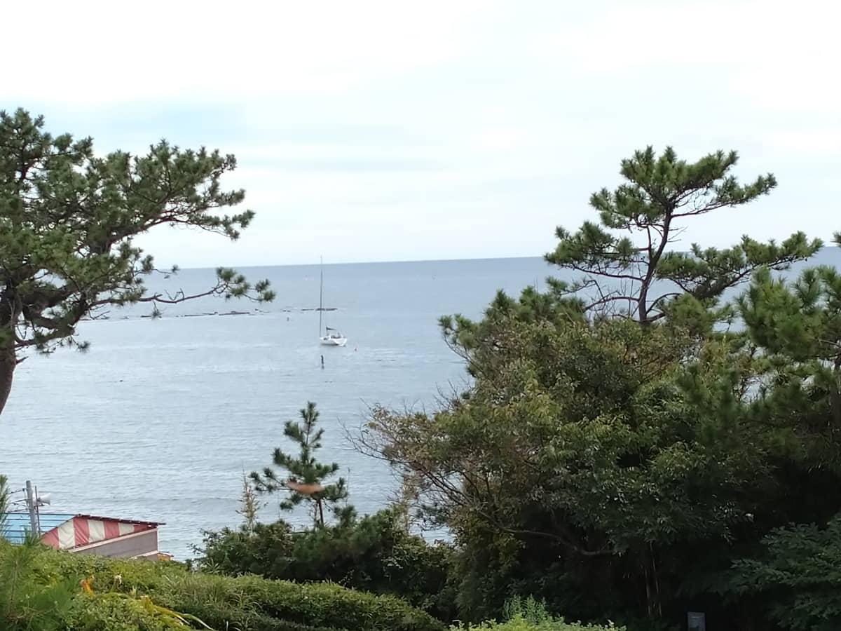 先週土曜日に 取材を兼ねて 久々に山口蓬春記念館へ。そして近くの県立近代美術館葉山のレストランのベランダでティータイム。 ここから一色海岸の風景を見るのは初めて・・海岸で遊ぶ子どもたちの声も聞こえました。