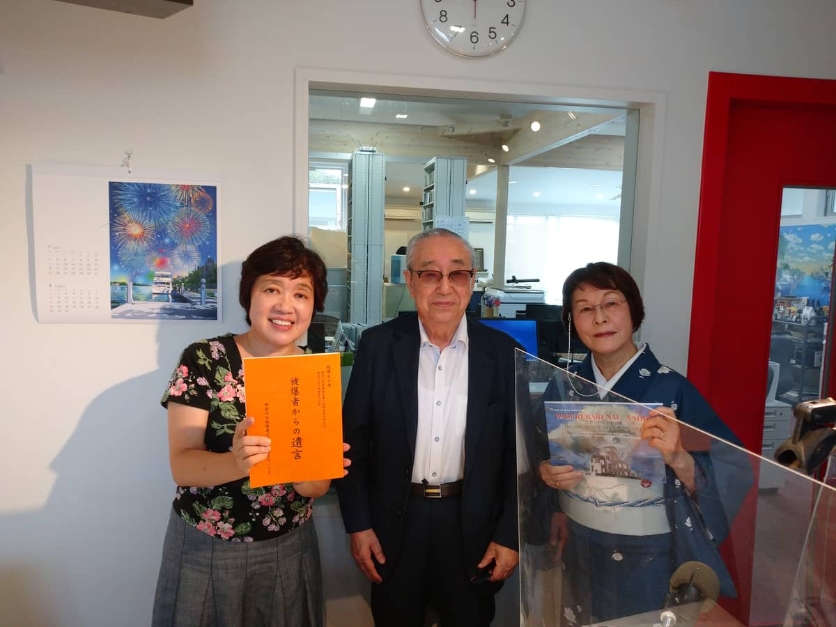 今日お二人がお持ちくださいました、被爆証言詩画集「WASURERARENAI ANOHI 忘れられないあの日」は英語と日本語で書かれています。