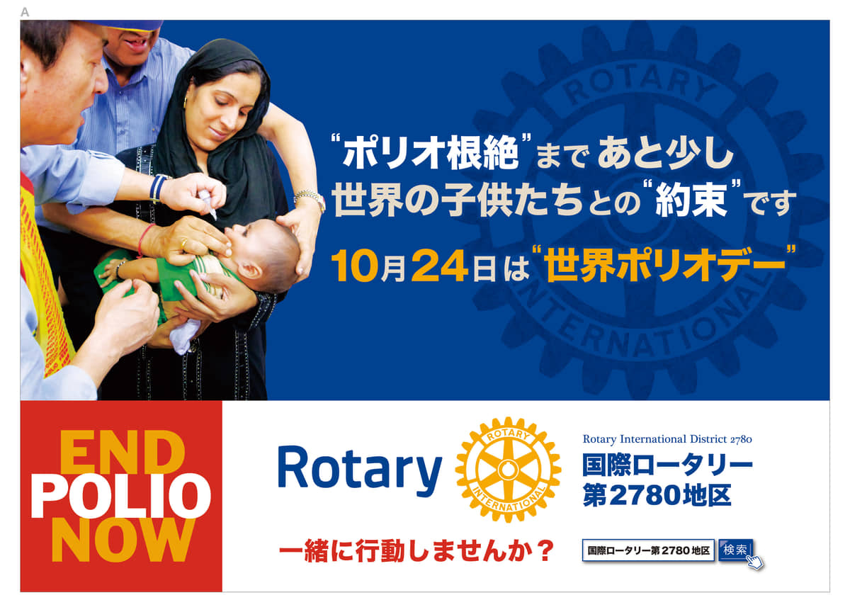 10月24日を世界ポリオデーとして全世界のロータリークラブやパートナー団体がEND POLIOを実現するために一斉に撲滅キャンペーンで啓蒙活動やワクチン投与を行います。