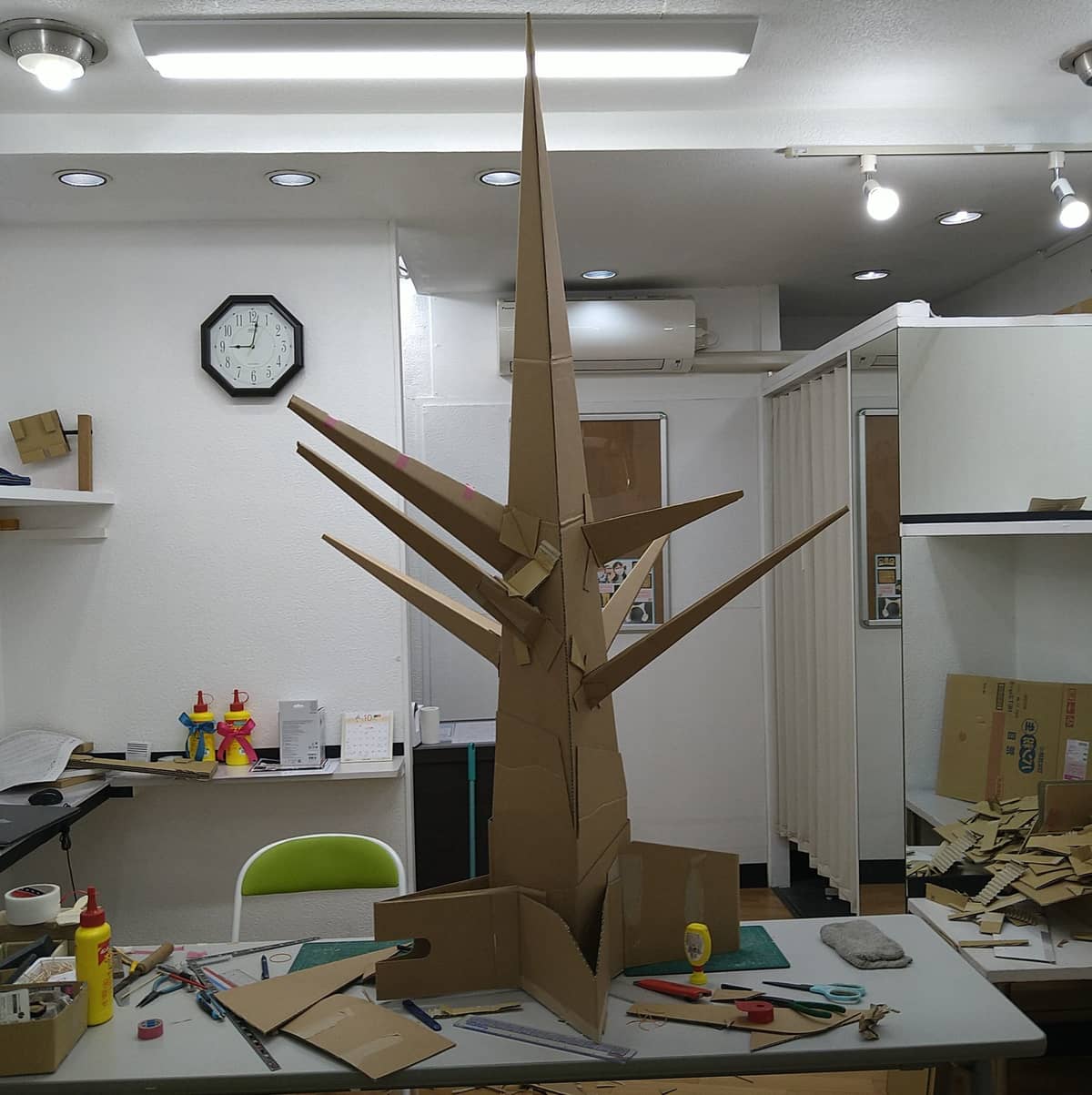 こちらはZAF2021ツリーです。↑高さは1.7mほど。幹が完成次第、ギャラリーにいらしたみなさんにダンボールの端切れを葉っぱや枝に見立てて自由に貼り付けてもらいます。ダンボールアート作品と制作風景を生で体験してもらう企画です。期間中誰でも自由参加(無料)出来る合同制作です。ご来場の際は是非1枚貼り付けて行って下さいね。ZAF2021企画は 11月14日まで 休みは 火曜日と水曜日