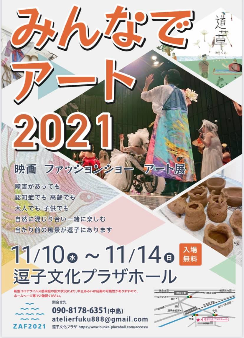「みんなでアート」とは 障害があっても 認知症でも 高齢でも 大人でも 子どもでも自然に混じり合い一緒に楽しむ当たり前の逗子風景を体感してもらうイベント。