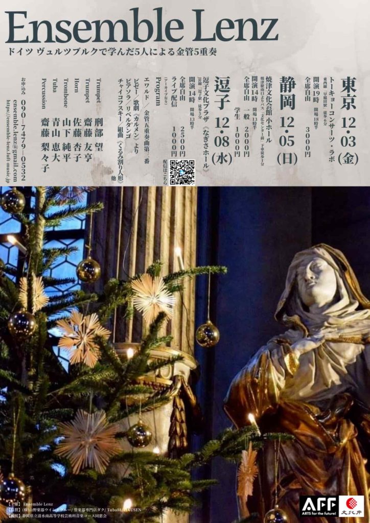 Ensemble Lenz の Lenzは ドイツ語で「春」という意味。Ensemble Lenz はドイツ ヴュルツブルクで学んだ 5人による金管五重奏です。メンバーはトランペット・刑部 望、 トランペット・ 齋藤 友亨、ホルン・佐藤 杏子、トロンボーン・山下 純平 、チューバ・青山 恵大