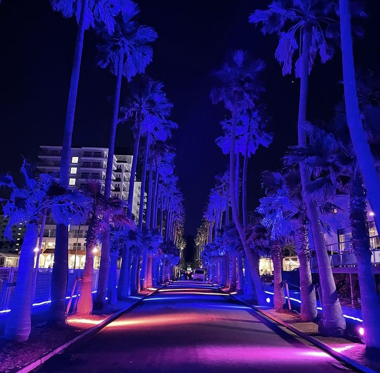 リビエラ逗子マリーナの、ヤシ並木一帯を青い光で照らしだす、ライトアップイベントでした。