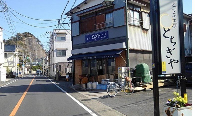 とうふ工房とちぎやさんは 逗子市久木3丁目、JR逗子駅の山側に線路に沿って鎌倉へ向かう県道沿いあります。