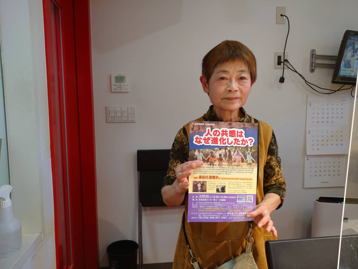 今日のハロー逗子では ずし楽習塾講座「人の共感は なぜ進化したか?」について NPO法人 ずし楽習塾推進の会 石井陽子さんにお話いただきました。