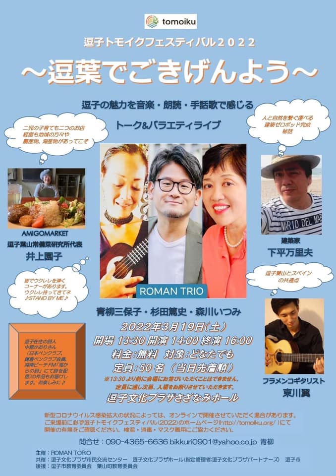 さて 逗子トモイクフェスティバル2022に参加します!中原かおりさんの作品も朗読しますよ。