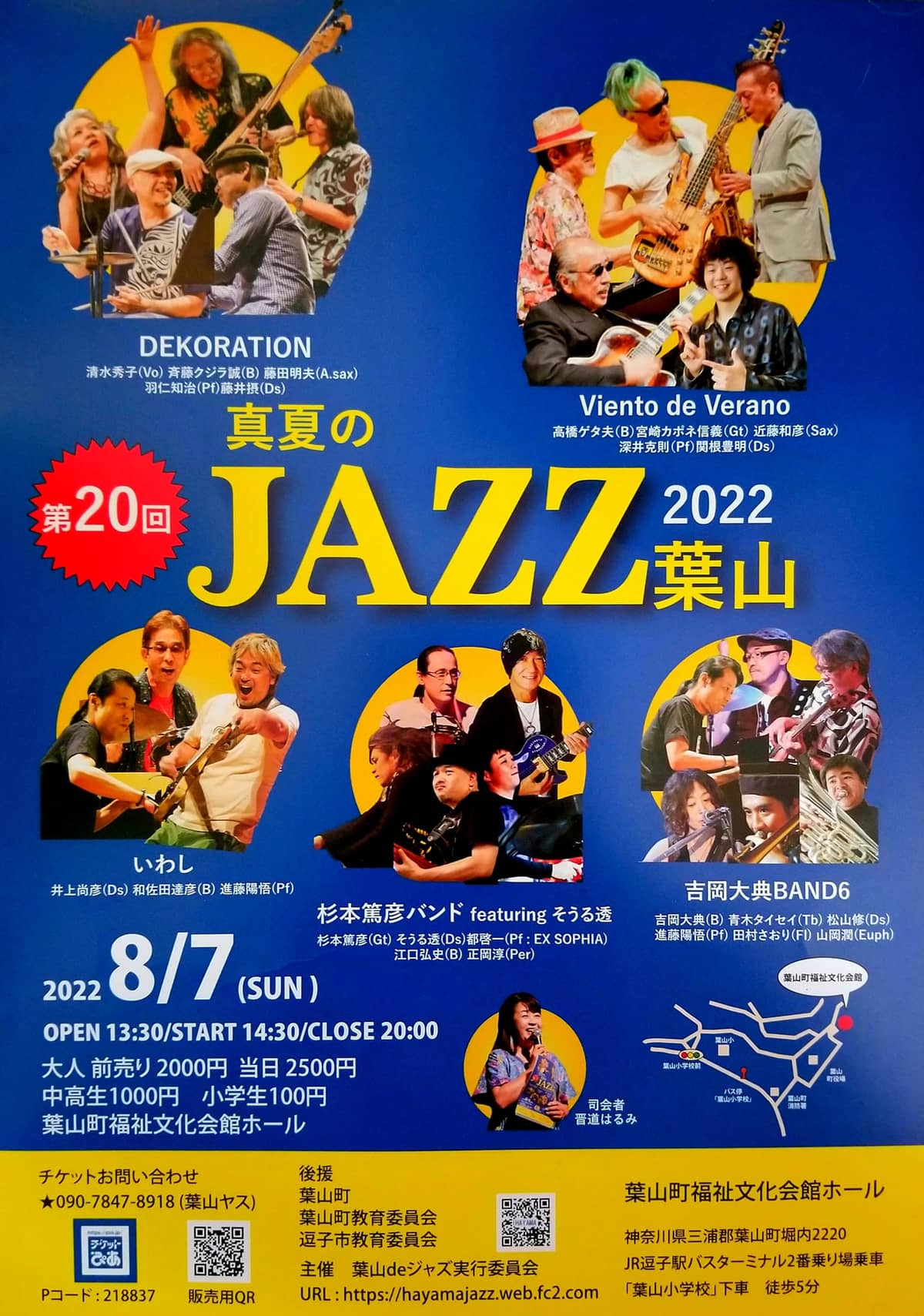 真夏のJAZZ HAYAMA は毎年8月第1日曜日に葉山で開催されてきましたが コロナの影響で 2020年と2021年は中止。 3年ぶりの開催。そして記念すべき 20回なのです。