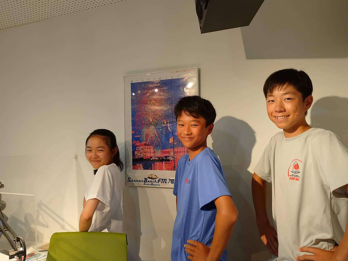 ジュニアのヨットの大会で、頑張って活躍している逗子・葉山の中学生3人をスタジオにお迎えしました。南郷中学校3年の後藤大志さん、久木中学校3年の嘉手川浬帆さん、葉山中学校1年加原弦季さん。弦季さんは江の島ヨットクラブジュニアに所属しています。
