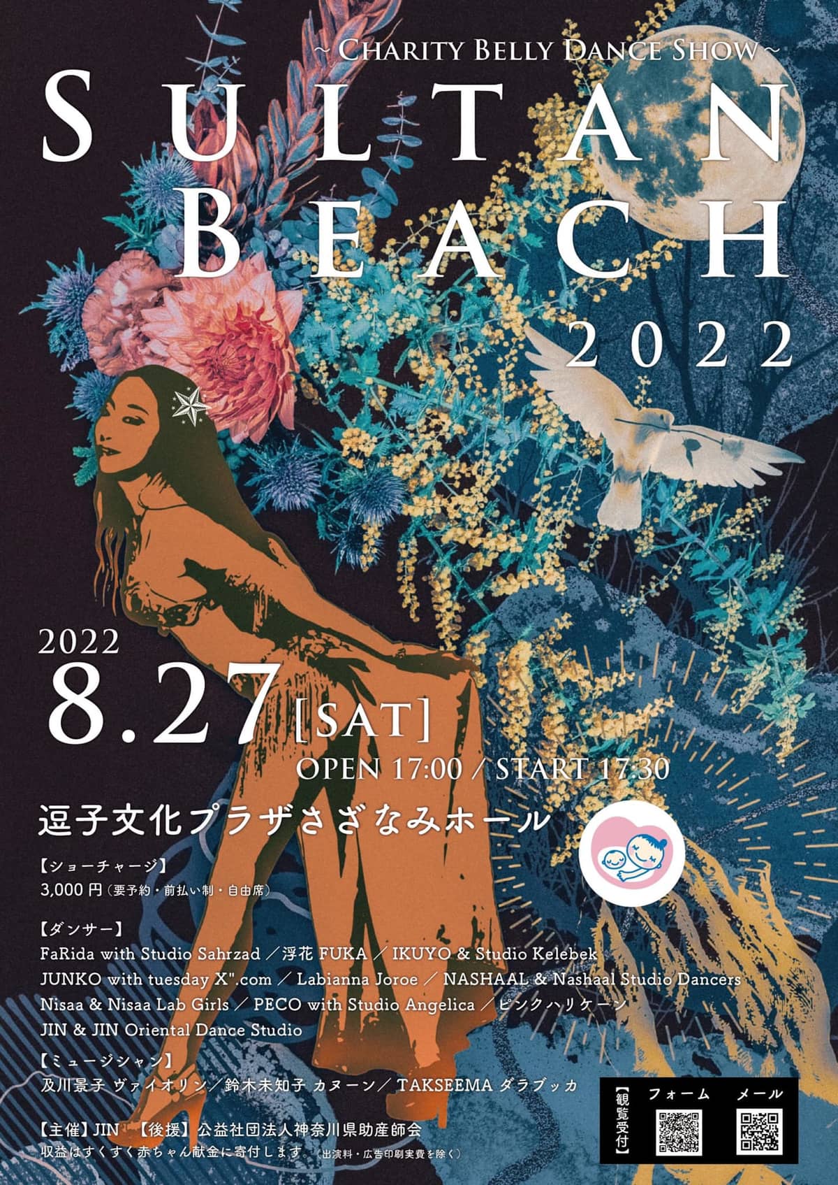 8月27日(土)17時半~逗子文化プラザさざなみホールで「スルタンビーチチャリティベリーダンスショー2022 」開催! ご出演は ジンオリエンタルダンススタジオ所属のインストラクター・Mee-YA さんとジンオリエンタルダンススタジオダンサーのMIHOさんでした。