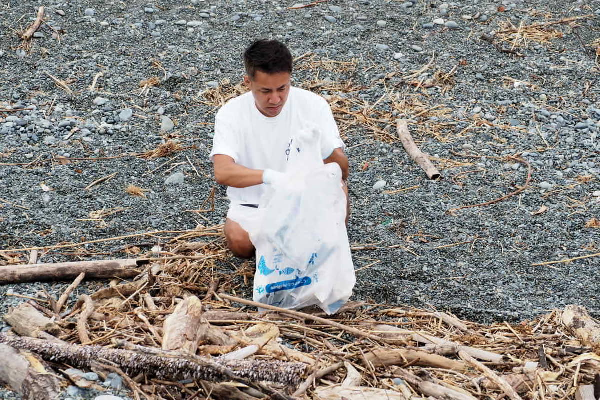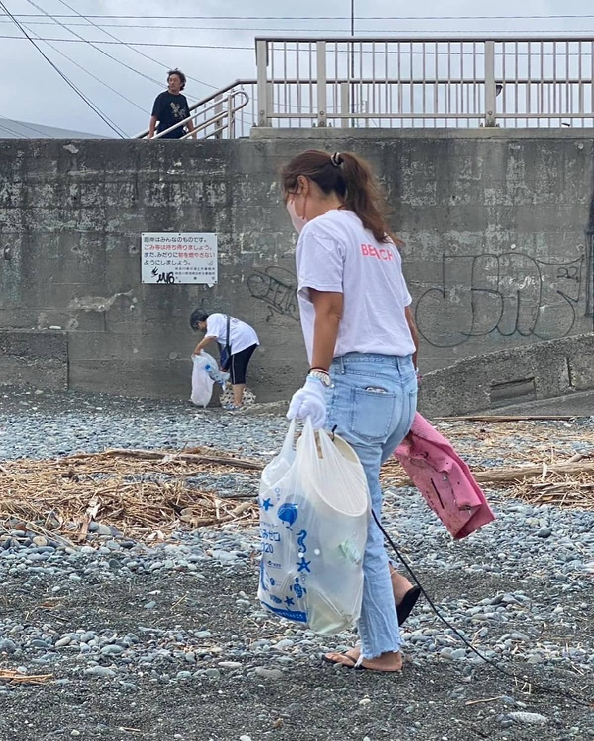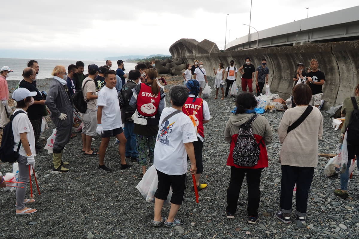 「大磯照ヶ崎海岸をきれいにするぞー」と神奈川県のSDGsスマイル大使MITSUMIさんの掛け声でビーチクリーンスタート。