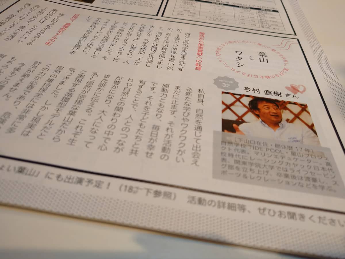 広報葉山9月号内「葉山とワタシ」でも今村さんについて紹介されていますね。