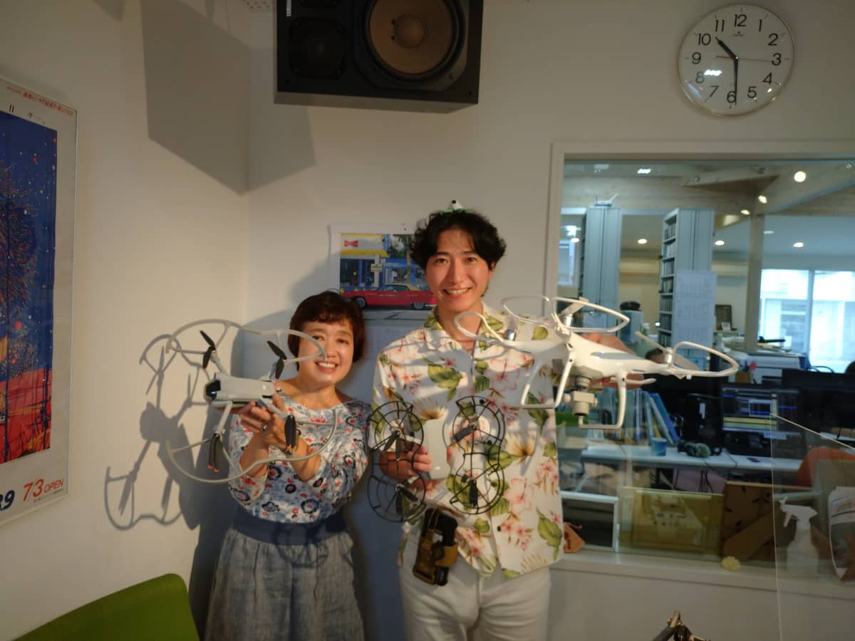 今日は実際にドローンもお持ちいただきました!おもちゃの様に小さなサイズのものもあり、それぞれ用途が違うそうです。