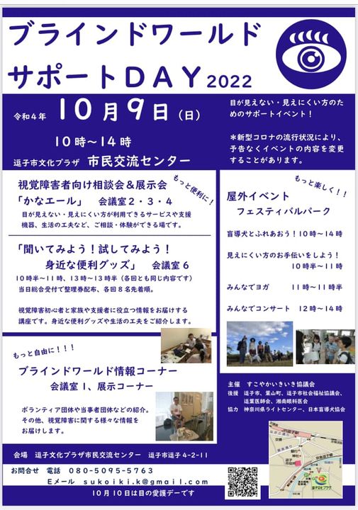 つづいてデイリーインフォメーションでは10月9日(日曜日) 逗子市文化プラザ市民交流センター今度の日曜日に開催される ブラインドワールドサポートDAY2022について 主催のすこやかいきいき協議会メンバーで 眼科医でいらっしゃいます澤崎弘美さんに電話インタビュー!