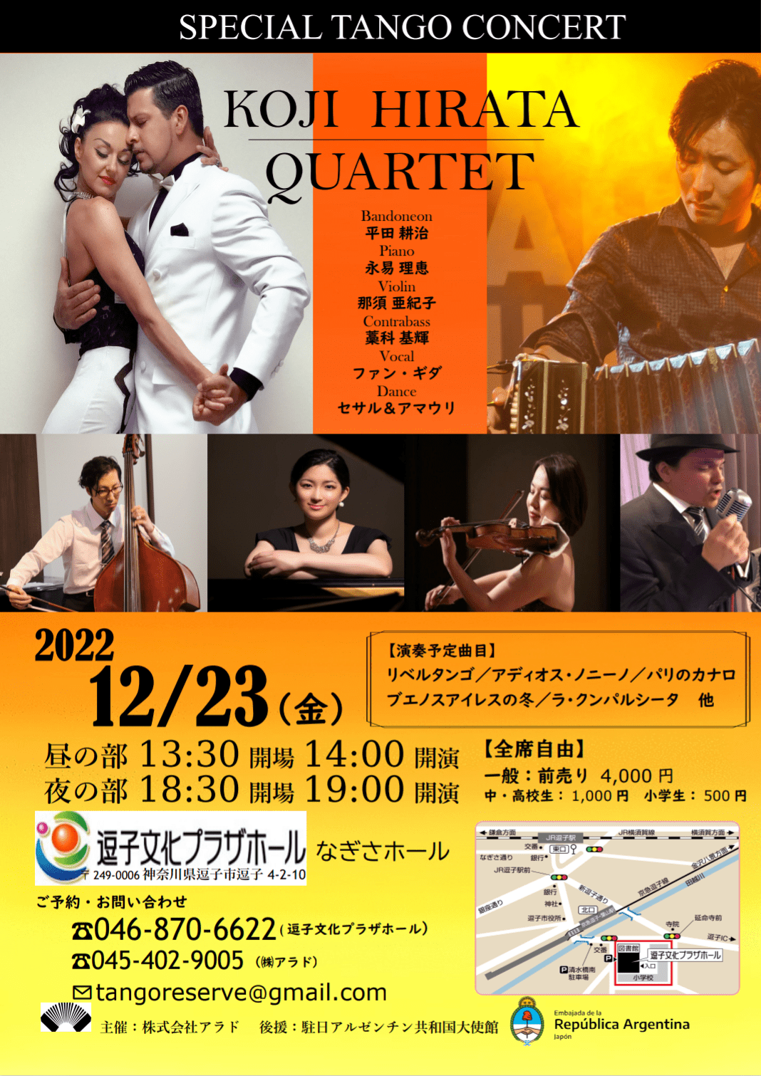 さらに12月23日には「スペシャルタンゴコンサート KOJI HIRATA QUARTET」