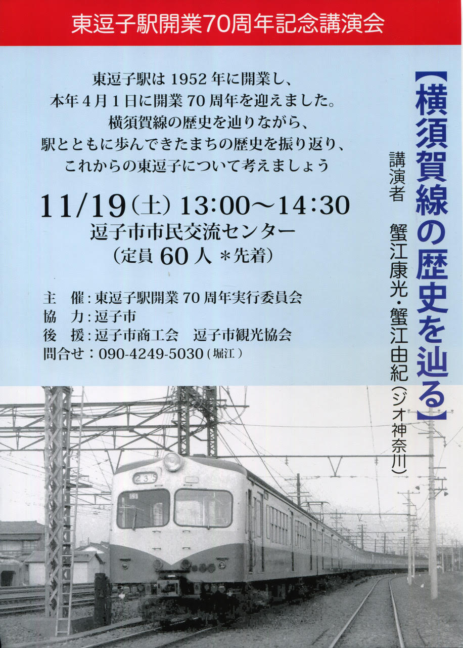 東逗子駅開業 70周年記念講演会「横須賀線の歴史を辿る」11月19日(土)に開催!