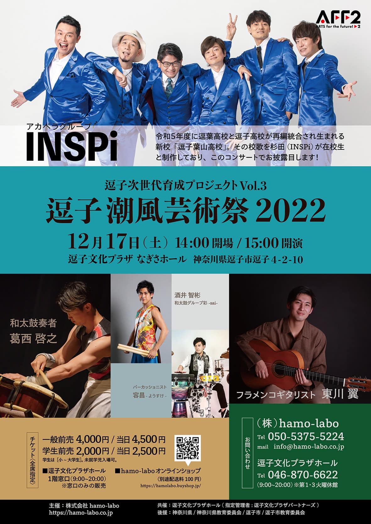 その校歌が 逗子潮風芸術祭2022 でお披露目されます。逗子高校と逗葉高校の現在の校歌とともに、新しい校歌を在校生のみなさんとINSPiが ステージで歌います!