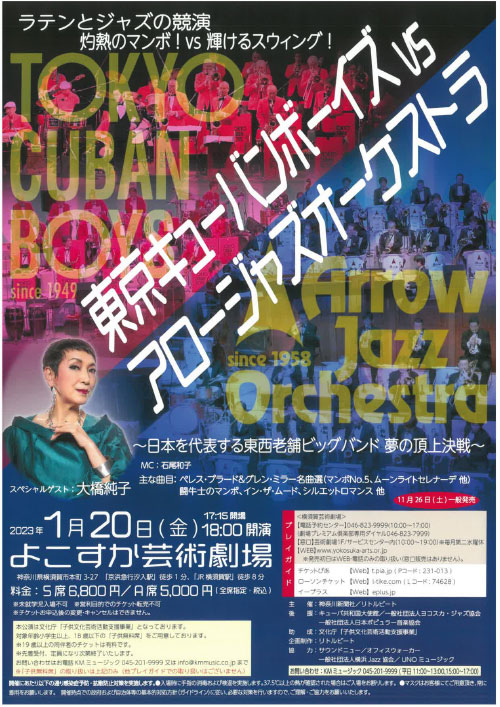 今日の番組内では ⽂化庁「⼦供⽂化芸術活動体験⽀援事業」として1月20日に横須賀芸術劇場で開催の「ラテンとジャズの競演 〜東⻄⽼舗ビッグバンドの頂上決戦〜 東京キューバンボーイズ vs アロージャズオーケストラ」について 主催・企画プロデューサーの角田泰彦さんにお電話インタビュー。