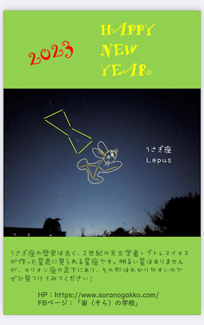 さて、今年はうさぎ年ですが、星座にもう「うさぎ座」があります。