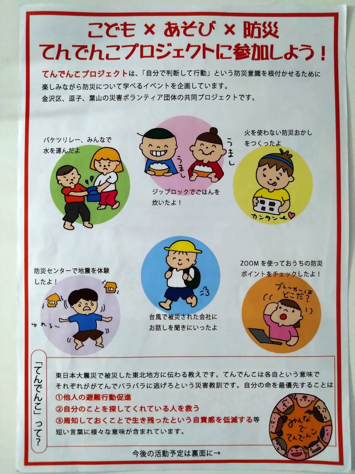 てんでんこ逗葉は 子どもたちに防災への意識を高めてもらおうと、4、5年前に発足。葉山災害ボランティアネットワークに所属し、防災教育を目的として3か月に一回程度、小学生以上の子どもたちを対象にプログラムごとに参加者募集をして活動してきました。