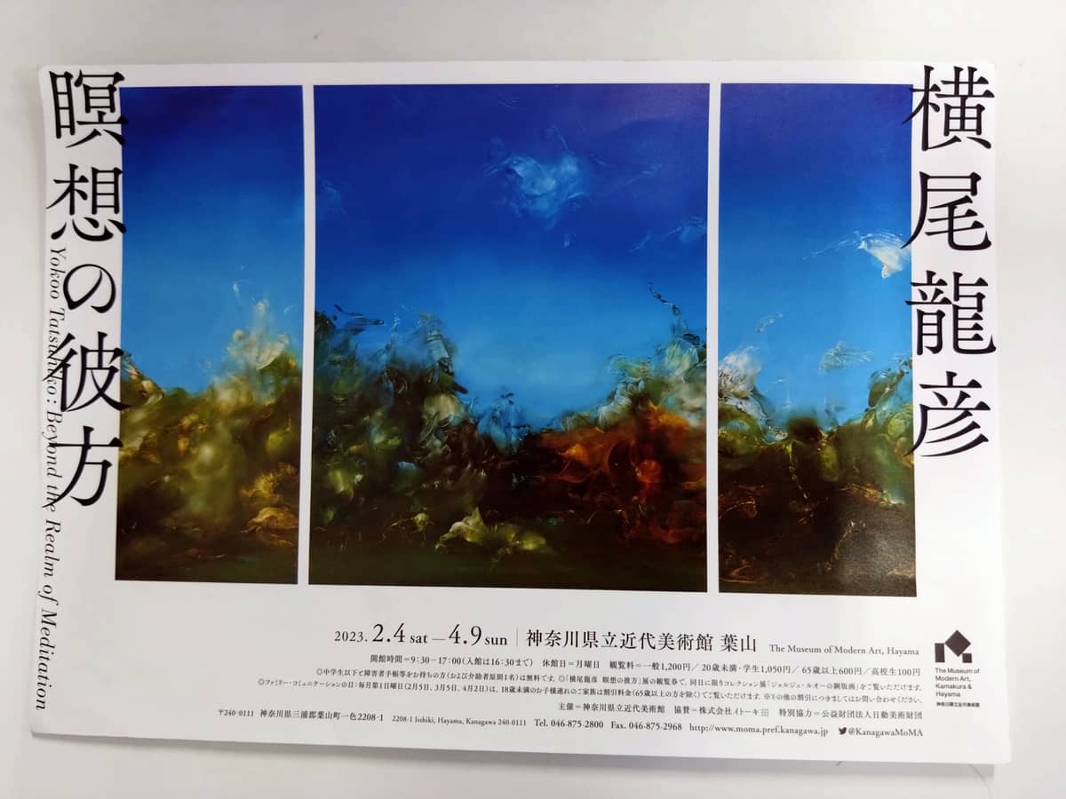 チラシの作品、最初に目にしたとき 幻想的な写真、もしかして水中?などと思ったのですが、こちらは《Vision II》 1981年、油彩です。横尾龍彦氏は1976年より神奈川県逗子市に4年ほど住み、そのころ始まった「青の時代」シリーズの代表作品です。
