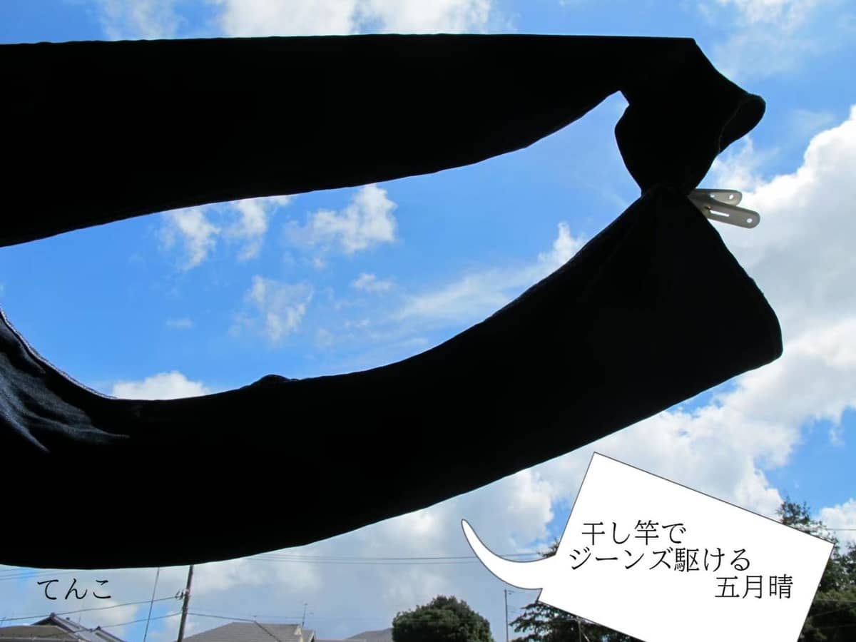 干し竿で ジーンズ駆ける 五月晴れ
