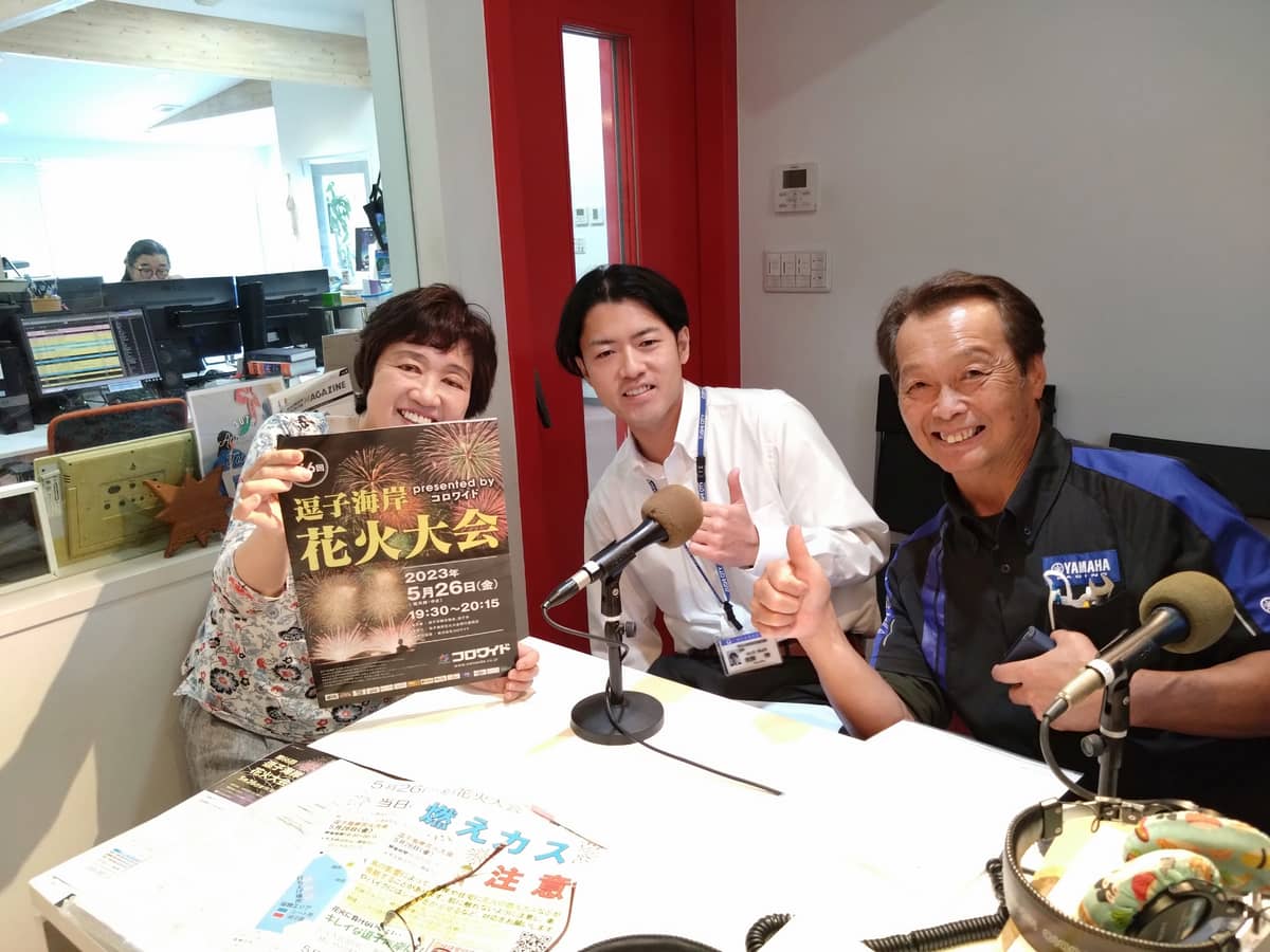 つづいて「ハロー逗子」では 第66回逗子海岸花火大会実行委員長・山上良さん 逗子市経済観光課・主事の佐藤怜さんをスタジオにお迎えしました。