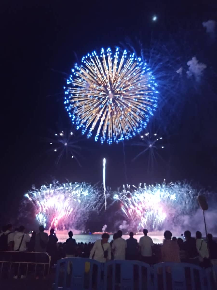 今回も司会進行をさせていただきました。花火が上がる25分くらい前に地震情報を入れたりと、ちょっと焦りましたが、無事に開催出来てよかった… 温かいメッセージ花火に加え、