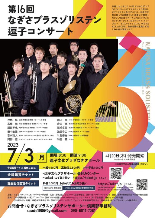 そして逗子での演奏会は回を重ねてリピーターも多く2019年まで毎年開催されていましたが コロナ禍と逗子市の財政難で公演が中断。今年 コロナの終息を待ちかねて、なぎさブラスを愛してやまない市民有志が自分たちの手でなぎさブラスブラスをもう一度聴きたい!と結集。ゾリステンサポーター倶楽部として企画・運営しています。