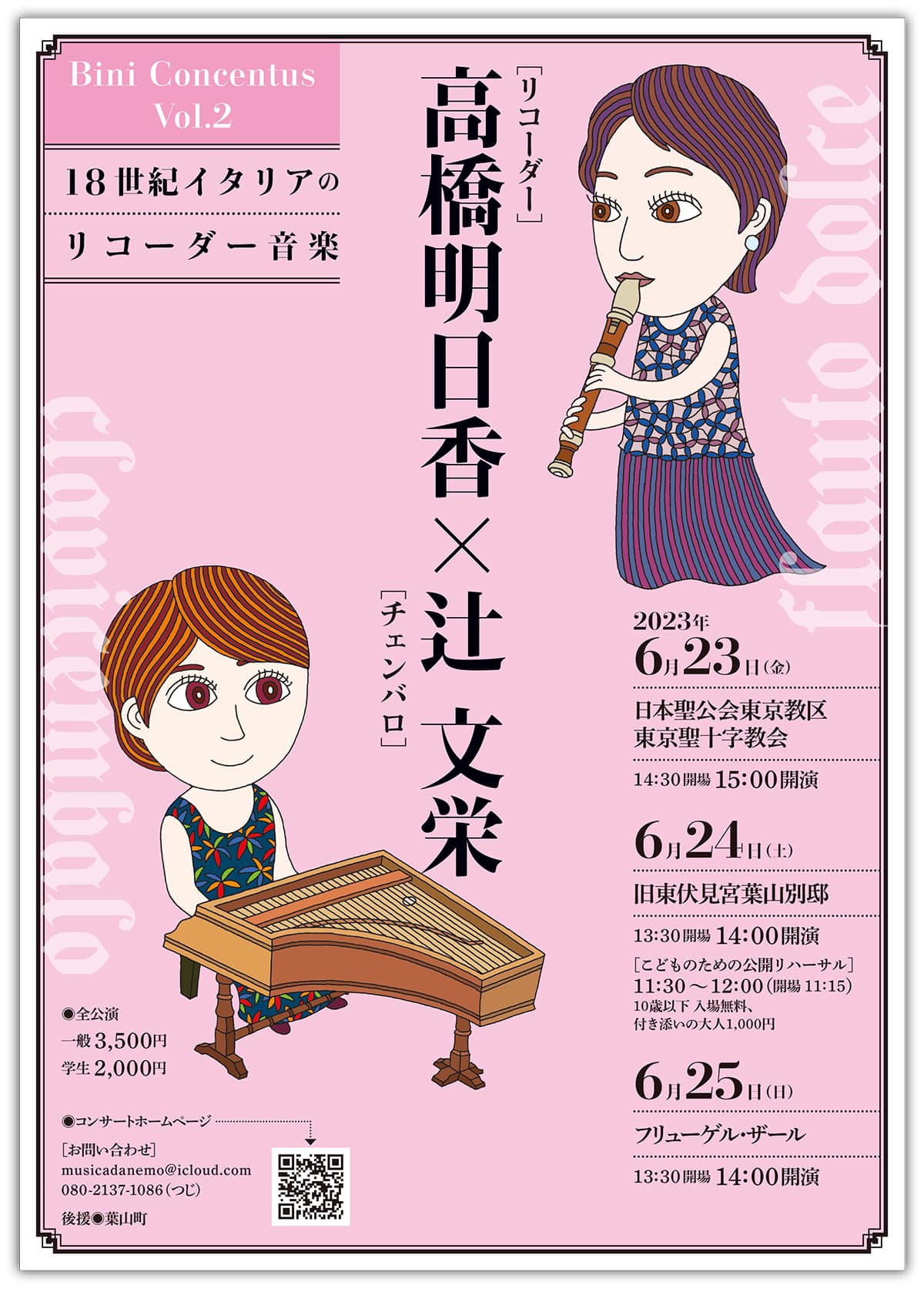 「18世紀イタリアのリコーダー音楽」が 旧東伏見宮葉山別邸で 24日(土)に開催されます。