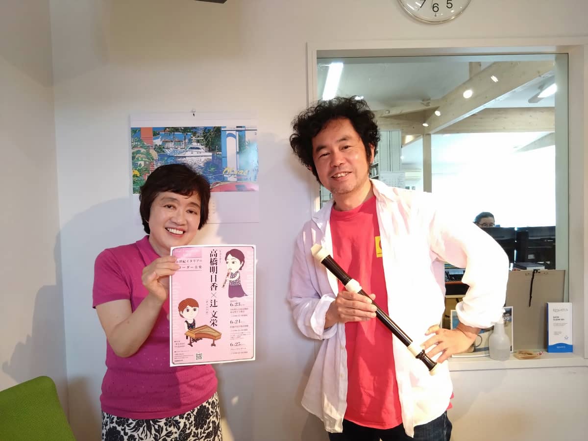 演奏は 高橋明日香さん(リコーダー)と辻 文栄さん(チェンバロ) 今回お二人はお仕事のご都合でスタジオにお越しいただけず 残念ですが、リハーサルでの音源をお聴きいただきました。