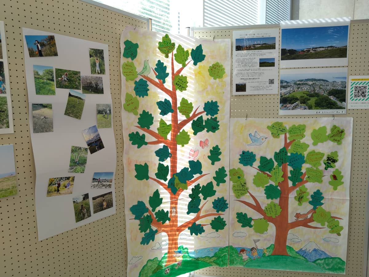 地元住民の方の思いが込められたメッセージも。主催は 次世代に逗子の自然を引き継ぐ会です。