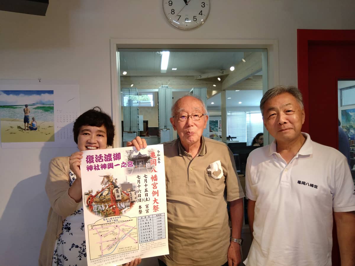 奥野さんと杉浦さんには 2019年5月に 亀岡八幡宮 社殿改築百年を祝う催しの件で ご出演いただだいております・・