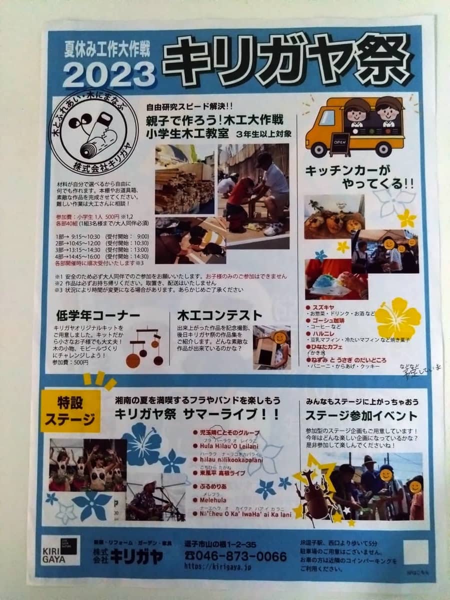キリガヤ祭は逗子の工務店 (株)キリガヤさんが、地域の方への感謝を込めて開催する、木工を中心としたイベントです。