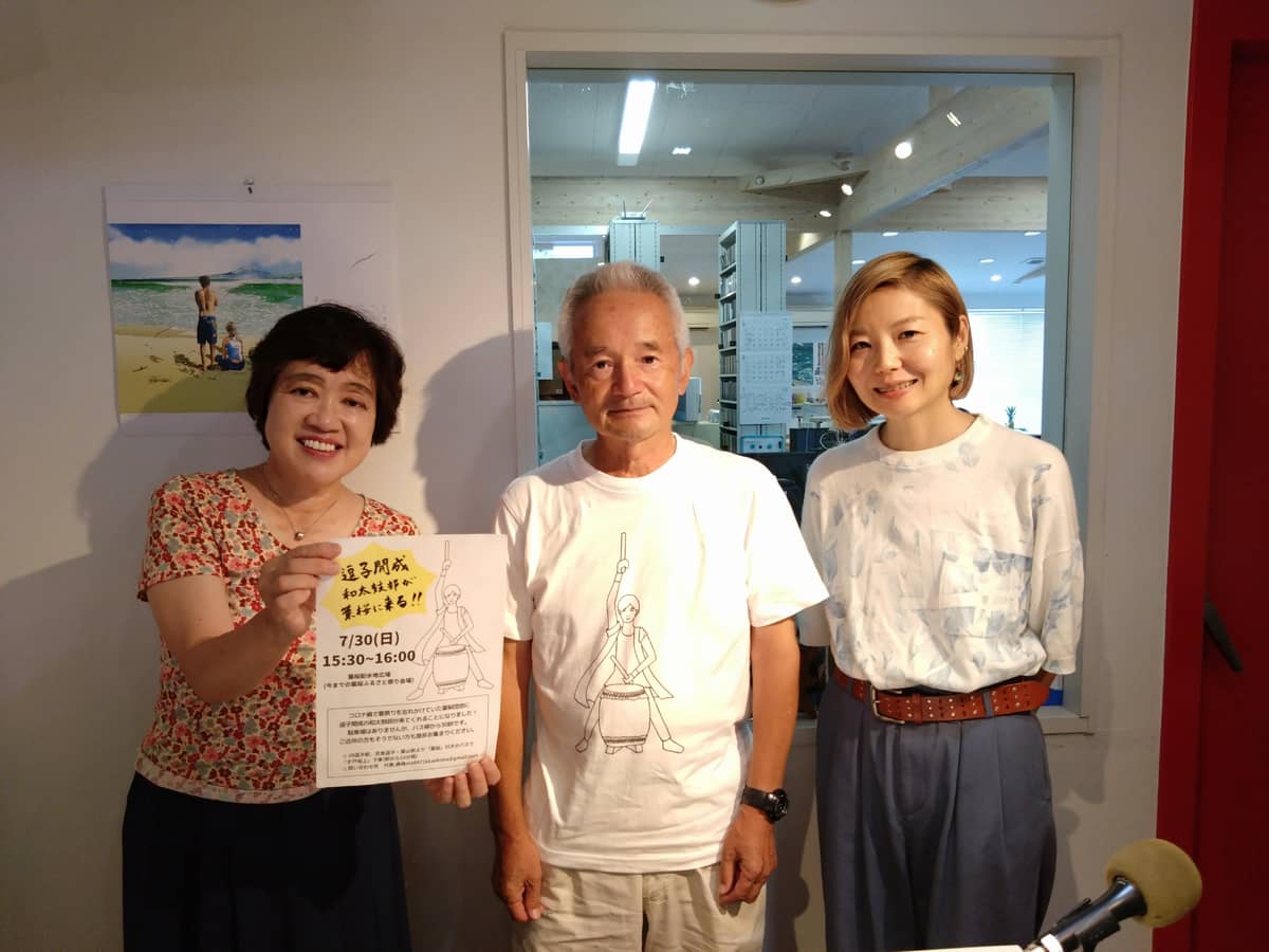 今週末、30日(日)午後3時30分頃から4時頃まで約30分間、葉桜団地の桜山低区配水池の広場に逗子開成中学校・高校の和太鼓クラブ4~50人に来ていただいて和太鼓演奏会が行われます!企画発案者であり、葉桜団地に住む鹿嶋清さんと荒木澄恵さんをスタジオにお迎えしました。