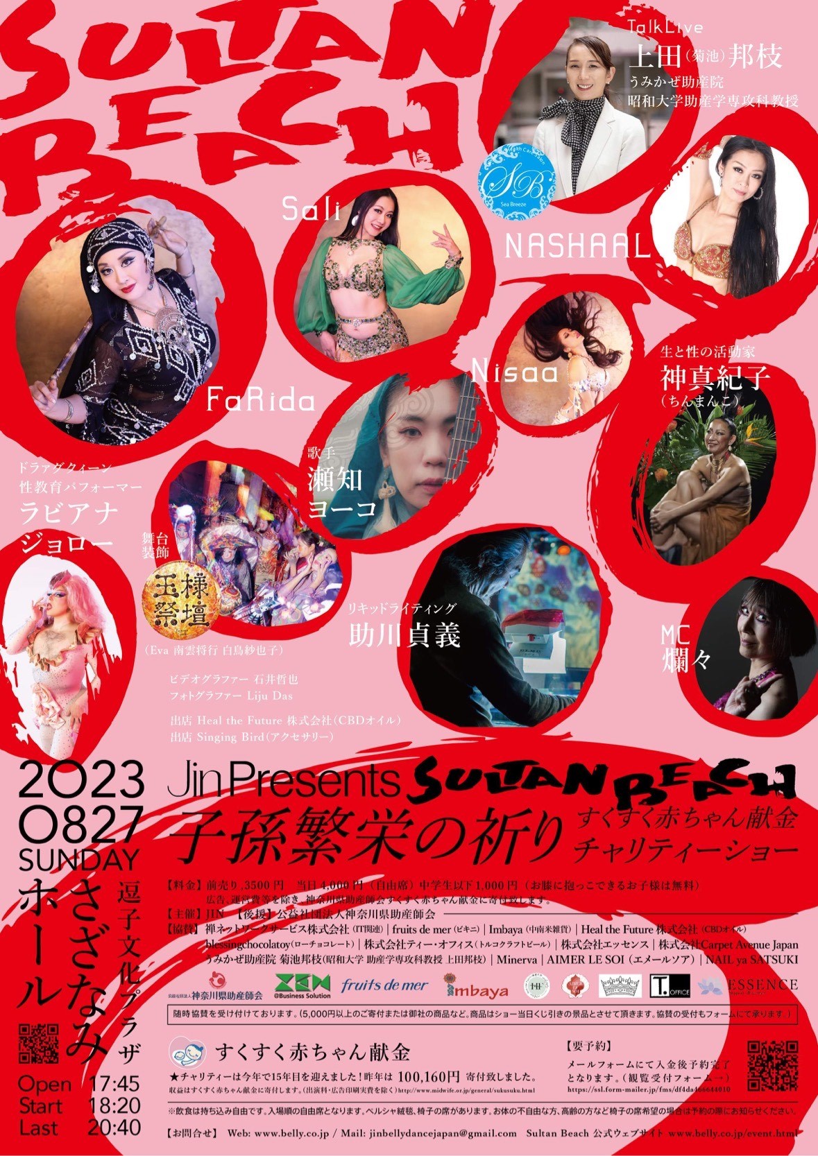 すくすく赤ちゃん献金チャリティーショー Sultan Beach 2023 ~子孫繁栄の祈り~ 8月27日(日) 逗子文化プラザさざなみホールにて 開催!主催のJIN オリエンタルダンススタジオ の 神真紀子さんにお話いただきました。