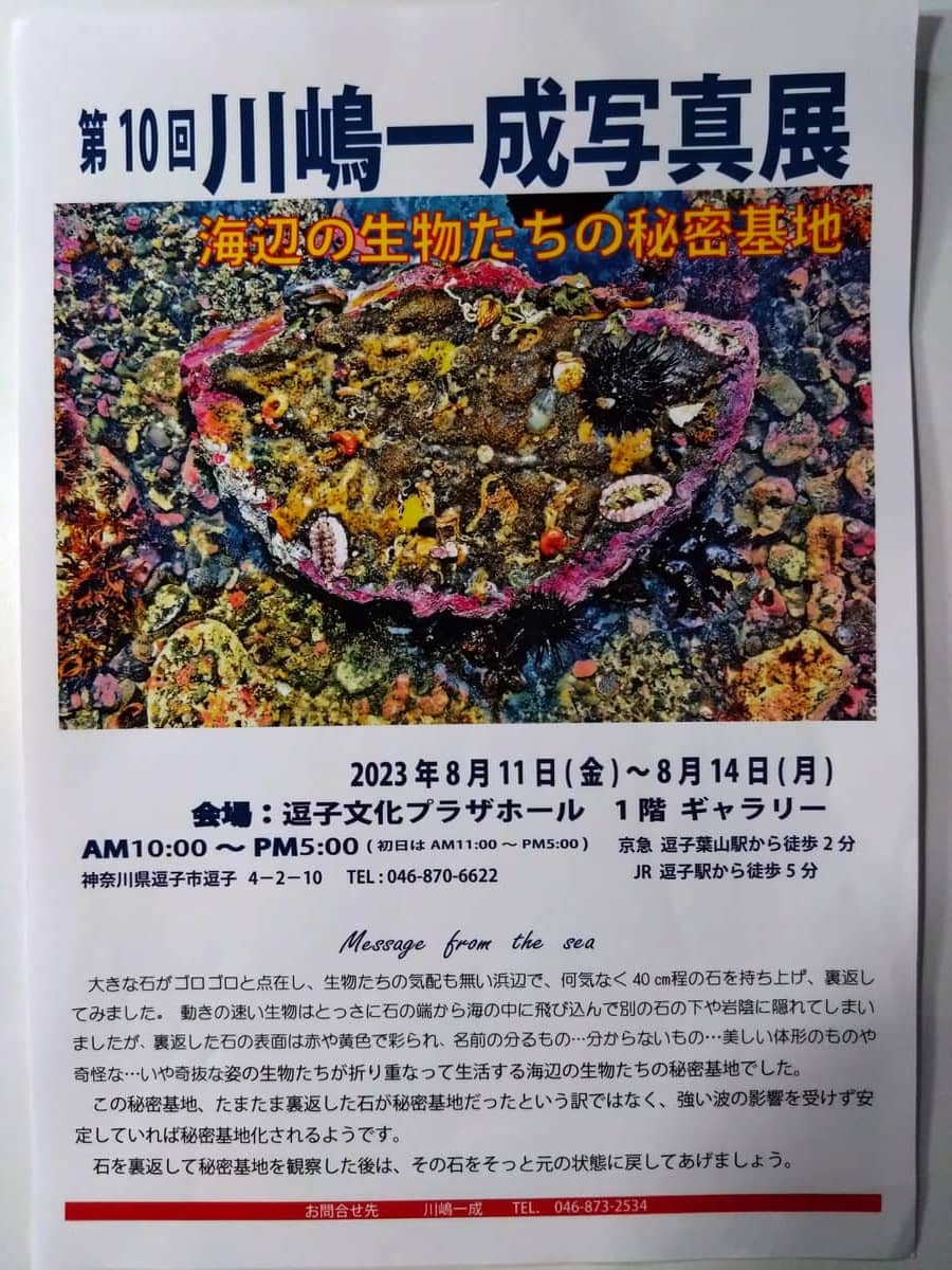 第1回の テーマは 「森の番人アカテガニと干潟のカニたち」 第7回は「海辺の自然探訪」(逗子・葉山と三浦の海)でした。 今回で10回目の写真展テーマは「海辺の生物たちの秘密基地」
