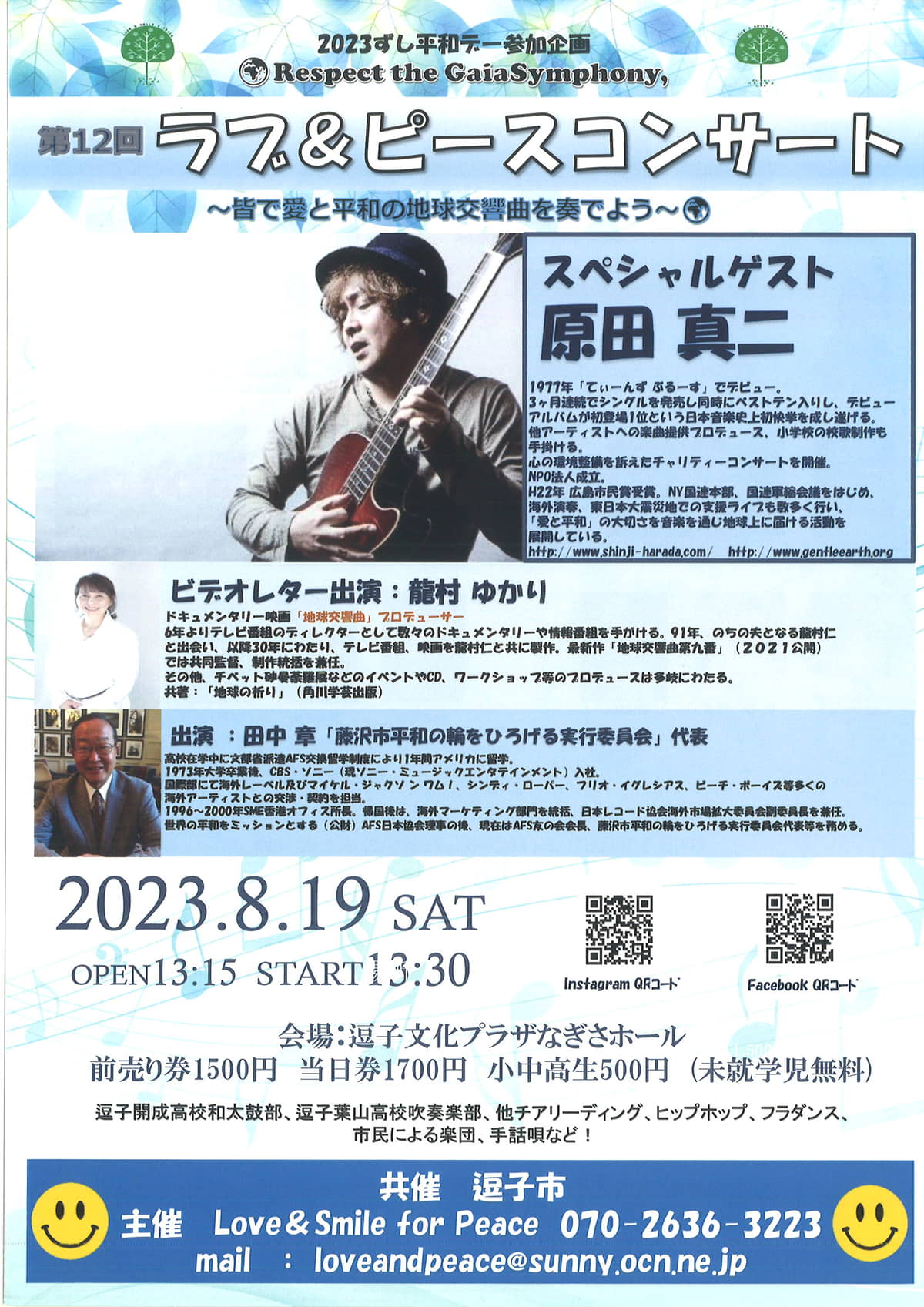 第12回ラブアンドピースコンサートの情報は、Instagramで「逗子ラブ&ピース」