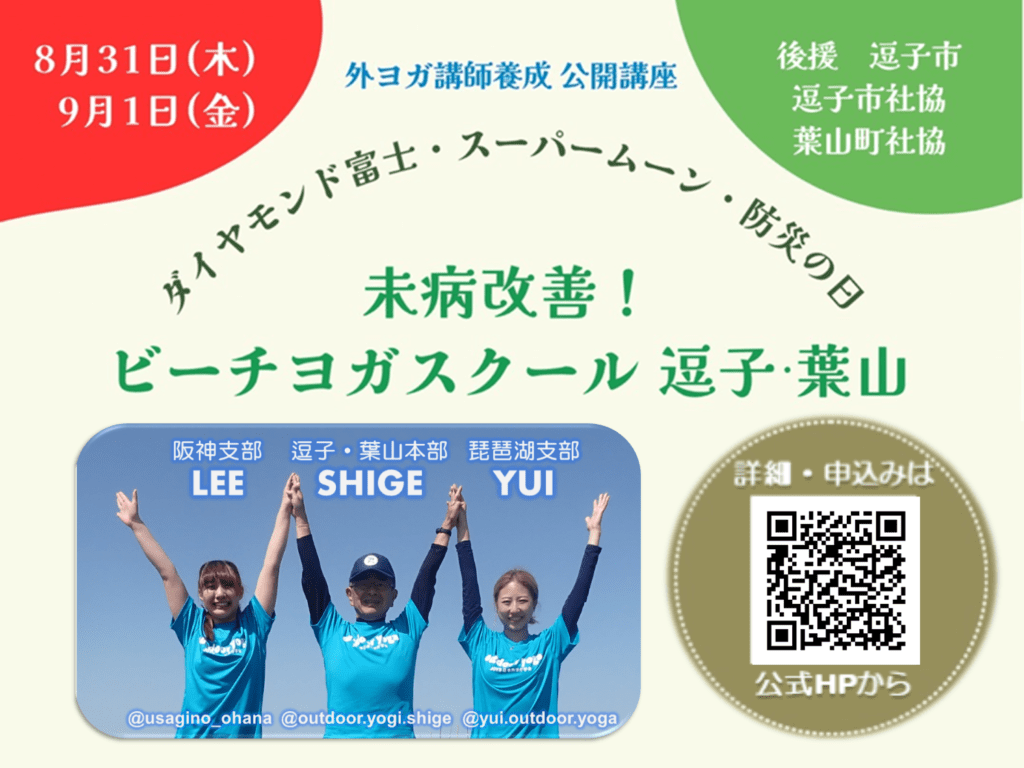 「未病改善!ビーチヨガスクール 逗子・葉山」日本外ヨガ学会 代表理事で 外ヨガ伝道師シゲさん